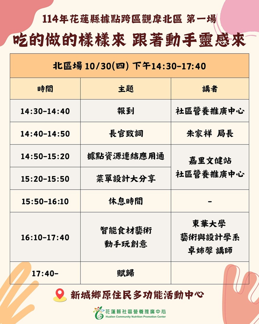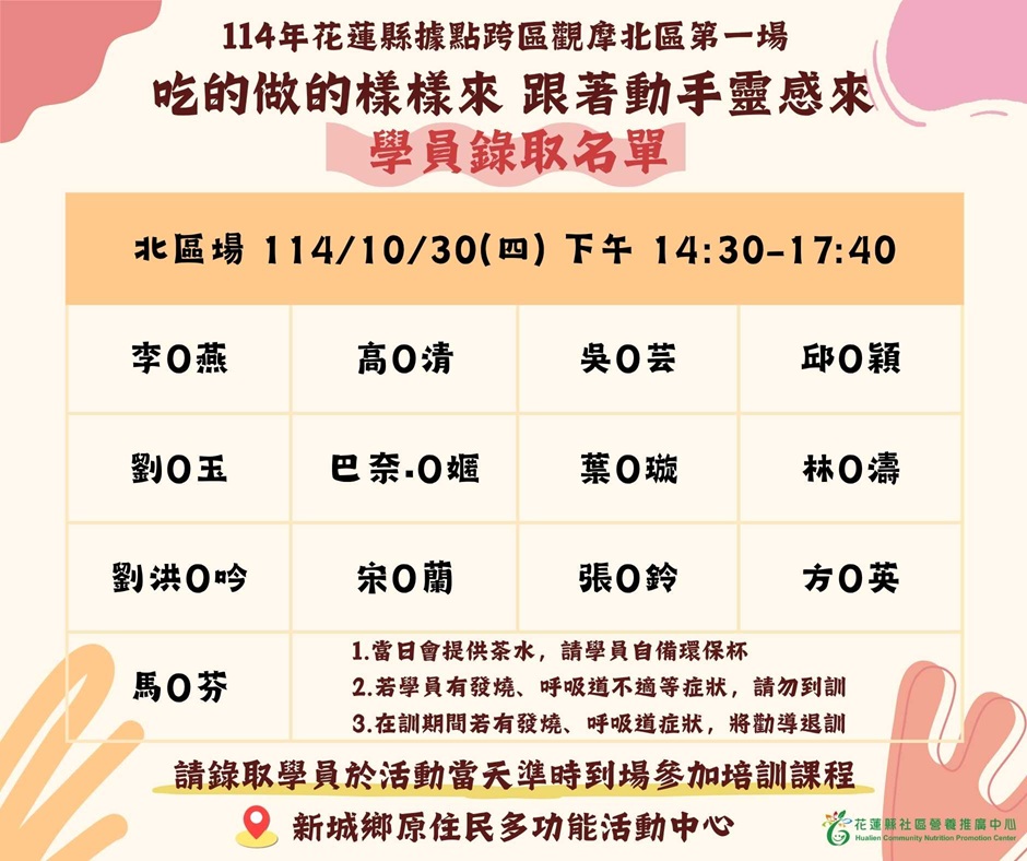 114年花蓮縣據點跨區觀摩北區【第一場】錄取名單∣花蓮動吃動吃生活GO官方網站動吃快訊~健康吃 快樂動 營造新生活