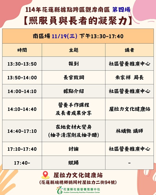 114年花蓮縣據點跨區觀摩北區【第四場】錄取名單∣花蓮動吃動吃生活GO官方網站動吃快訊~健康吃 快樂動 營造新生活